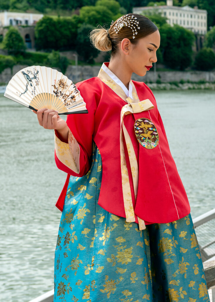 Le hanbok est le vêtement traditionnel coréen, porté depuis des siècles lors des cérémonies et des grandes occasions. Composé d’un jeogori (veste) et d’un chima (jupe) pour les femmes, ou d’un baji (pantalon) pour les hommes, il se caractérise par ses lignes épurées et ses couleurs vives. Chaque élément du hanbok a une signification et reflète l’harmonie et la beauté de la culture coréenne.